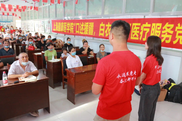 “新疆,美丽有爱的地方!”今年暑期7月23日至30日的这8天时间,让上海健康医学院20名师生代表组成的“口述援疆,白衣传承”医疗服务党史宣讲团印象尤为深刻。他们身穿红色队服,一起结伴穿越3000公里远赴新疆喀什,以医学生的独特视角,访谈实录援疆医务人员的心路历程;以一技之长为喀什居民科普急救医学知识;用维吾尔语和普通话双语讲好沪新党史故事,传承红色基因,促进民族团结。