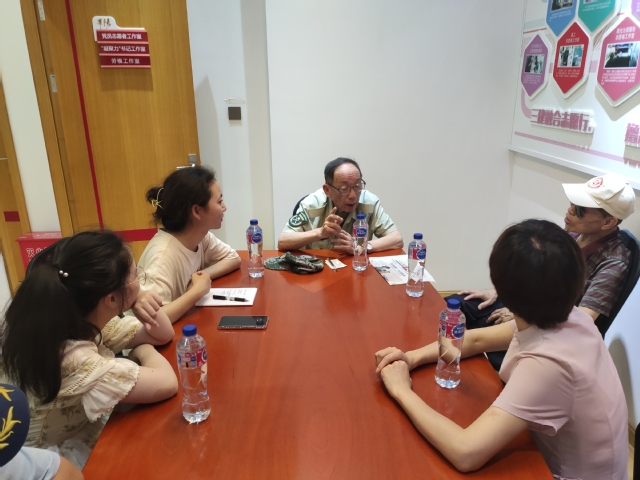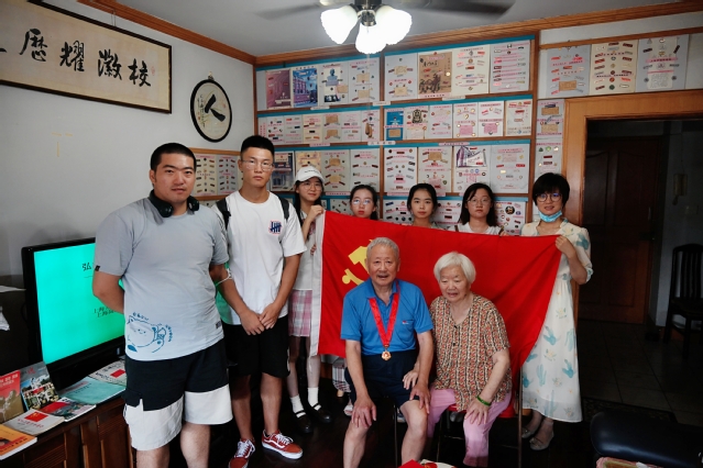 在长宁华阳街道服务中心,师生们聆听了新四军沙家浜历史研究会三师分会长王者梁老战士讲述人生故事。从工人到军人,从大学生身份到记者、总编,王老先生一段又一段的人生经历里,刻画着深深的时代印记。“在部队成为枪杆子,进单位成为笔杆子”,拥有57年党龄的王老先生曾在党和部队培育下成长,更将毕生精力致力于服务和奉献。他一生热衷于“学雷锋”,退休后发起了“三高学雷锋团队”,带领一群“银发老人”,践行志愿服务行动,续写“雷锋精神夕阳红”。老战士的闪亮的勋章、泛黄的宣传旧杂志,及那跨越时代的奋斗史,让参加寻访的师生们颇受教育,倍感触动,纷纷表示要弘扬好老一代共产党员的优良传统,传承好他们的红色基因,续写出新的时代故事。