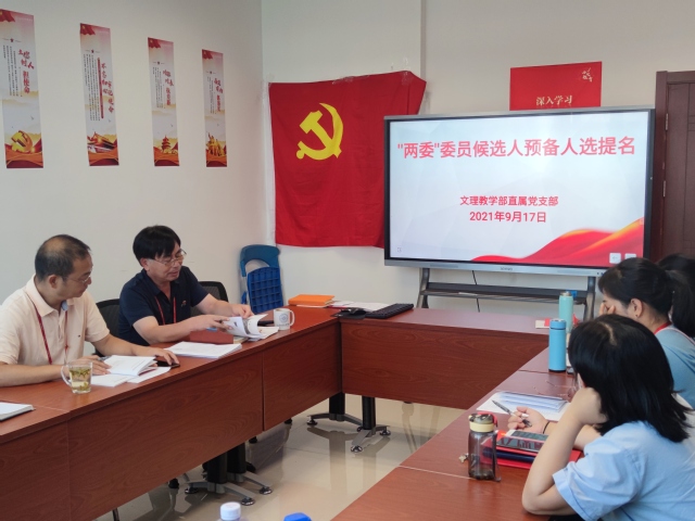 “两委”委员提名工作是学校党内政治生活中的一件大事,文理教学部直属党支部高度重视,经过精心组织,周密安排,书记作为第一责任人,反复强调要严格按规定程序,遵守政治纪律、严格组织纪律、严明工作纪律,充分发扬党内民主,认真听取和尊重广大党员的意见,严格把握“两委”委员候选人预备人选的条件、构成原则,从工作大局出发,最终顺利完成“两委”委员候选人预备人选的提名推荐工作。(秦禹权 付艳君)