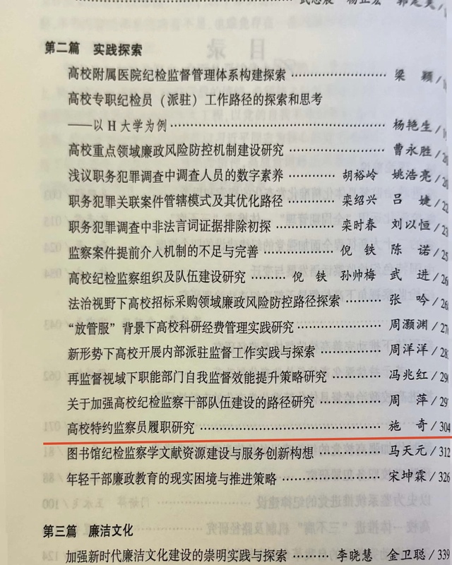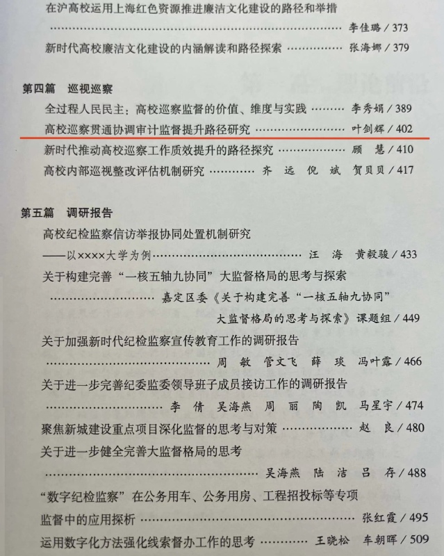 由华东政法大学纪委主办的“推进新时代纪检监察工作高质量发展”论坛于2023年12月22日在华东政法大学长宁校区成功举行,我校纪委办主任施奇应邀参加论坛。论坛前期进行了论文征集,面向上海市各区县和高校纪检监察机构征集了纪检监察工作相关论文50余篇,汇编后由北京大学出版社出版了《新时代纪检监察工作高质量发展》论文集。我校纪委施奇同志的《高校特约监察员履职研究》和叶剑辉同志的《高校巡察贯通协调审计监督提升路径研究》两篇论文被收录进了论文集。