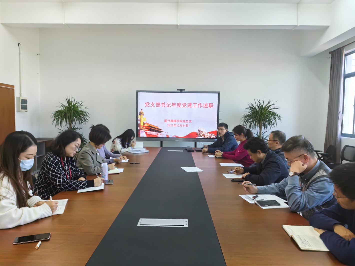 12月14日下午,医疗器械学院党总支在南苑18号楼506会议室召开2023年度党支部书记党建工作述职评议会,会议由学院党总支书记李晓欧主持,学院党总支委员、各党支部书记参加了此次述职评议会。