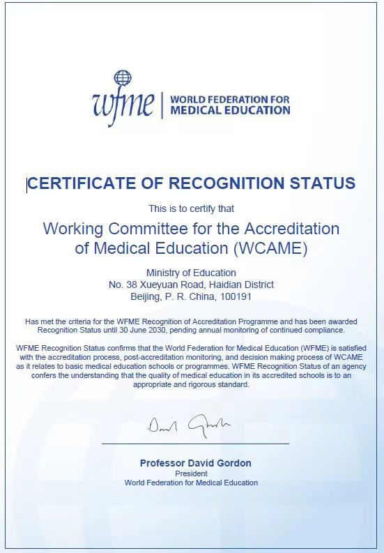 2002年在教育部的支持下,中国高等教育学会医学教育专业委员会和北京大学医学部联合举办了“医学教育标准国际研讨会”,引入了医学教育国际标准并成立了“医学教育国际标准本土化研究与实践”课题组。在此课题组的基础上,教育部委托中国高等教育学会医学教育专业委员会组建了“中国医学教育质量保证体系研究”课题组。该课题组参照WFME的《本科医学教育全球标准》等国际或区域标准,澳大利亚、英国、美国等国家的相关标准,研究拟订了《本科医学教育标准—临床医学专业(试行)》。2008年,教育部、原卫生部联合颁布了此标准,并将其作为我国临床医学专业认证的依据。