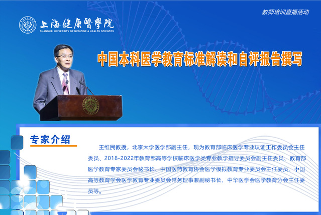 本次培训邀请到北京大学医学部副主任王维民教授担任主讲。王维民教授长期从事教育部临床医学专业认证、高等学校临床医学类专业教学指导委员会工作,是临床医学专业认证方面的权威。王教授以“本科临床医学专业认证推进与医学教育标准解读(临床医学类)”为题,首先对国内外临床医学专业认证的发展历史、第二轮认证准入的基本条件、工作要求等相关情况作了系统介绍,并结合我国正在执行的《本科医学教育标准》以及认证过程中的具体事例和普遍存在的不足,对专业认证自评报告的撰写进行逐条、细致讲解。