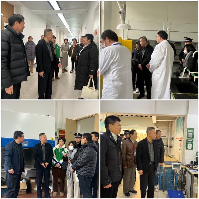 检查组一行分别对食堂、学生宿舍、化学品暂存点、非机动车充电停车棚、图书馆、快递驿站、药学院实验室、公卫学院实验室等校园安全重点区域、人员密集场所进行全面细致检查,并认真听取相关负责人汇报,对发现的问题做了现场指导和要求。