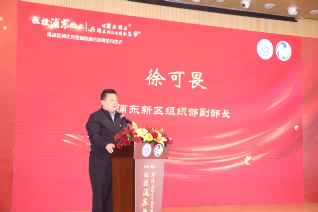 浦东新区组织部副部长徐可畏讲话,他代表区委组织部向两家单位建立深度融合发展关系表示热烈的祝贺。他指出,上海健康医学院党委与周浦镇党委深度融合发展,是新形势下不断加强基层党组织建设、推动党建工作不断迈上新台阶的有益探索。希望双方以本次党建联建为基础,围绕党史学习教育以及“我为群众办实事”活动,扎实开展“七联”合作,在三个方面上下功夫:一是围绕中心大局,进一步拓展党建联建的内涵外延;二是坚持问题导向,进一步提升党建联建的层次能级;三是强化责任担当,进一步打造党建联建的创新品牌。努力形成“领跑全区、影响全市”的党建工作品牌。