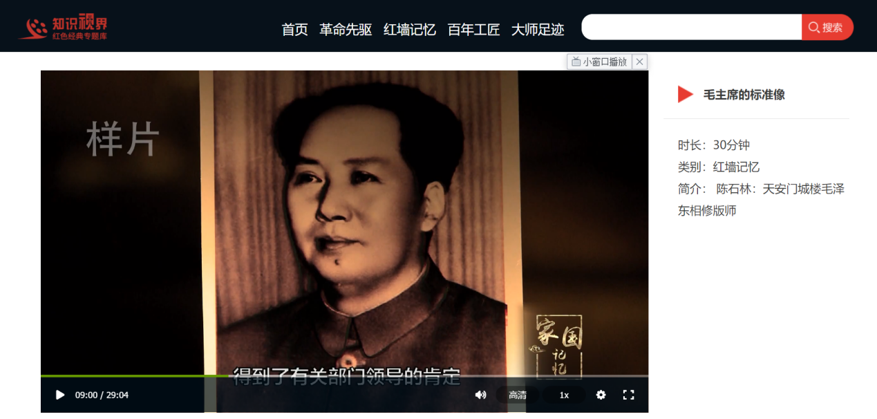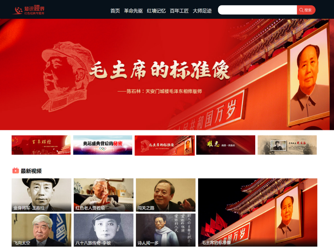 红色经典专题库以革命先驱、红墙记忆、百年工匠、大师足迹四大版块为主体内容,以史料展示、故事讲述、人物采访视频为表现方式,重点展示了建党100年征程中的重大事件、杰出人物、历史故事。通过200部视频,累计100小时高清影像,带您重温新中国创造者和建设者的丰功伟绩,重燃每一个中国人心中炽热的红色火焰,为培养能担民族复兴大任的时代新人贡献应有之力。