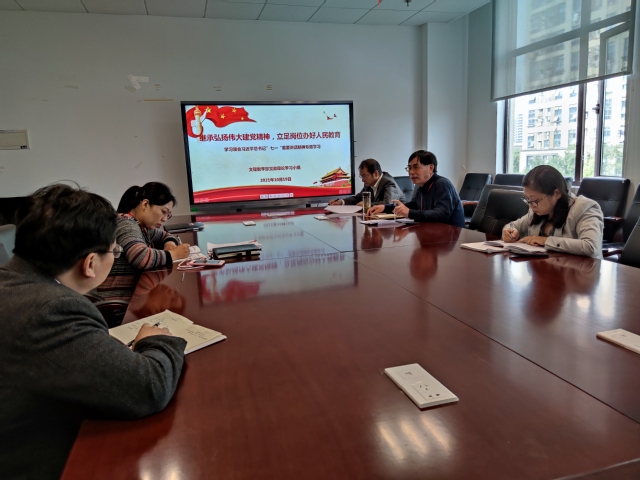 为深入学习领会习近平总书记“七一”重要讲话精神,文理教学部党政理论小组于10月19日中午召开了“继承弘扬伟大建党精神,立足岗位办好人民教育”的党政理论学习专题会,会议由党支部书记秦禹权主持,教学部党政班子和支委会成员参加,结合自身实际和分管工作,交流学习心得体会。