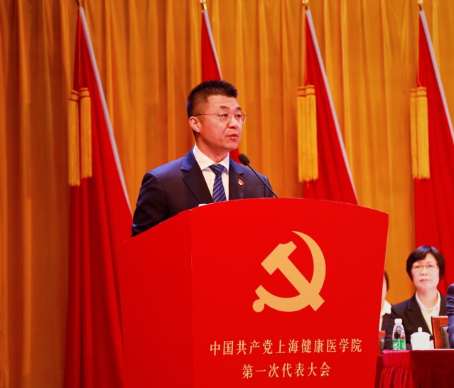 郭永瑾代表中共上海健康医学院委员会向大会作了题为《坚守初心、凝聚力量,奋力开启特色鲜明的高水平应用型医学院建设新征程》的报告。大会由吴韬主持。