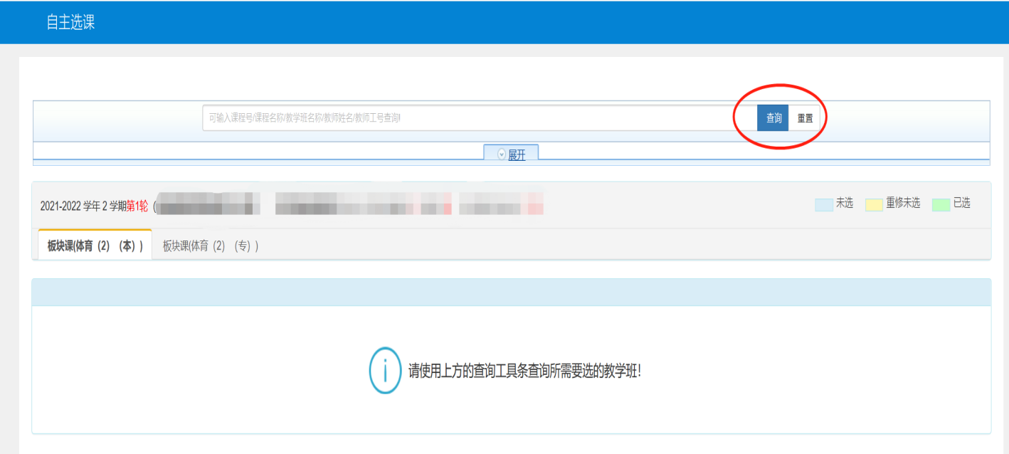 注:学生可于2月22日9:00-22:00事先查看可选班级,此时无法选课