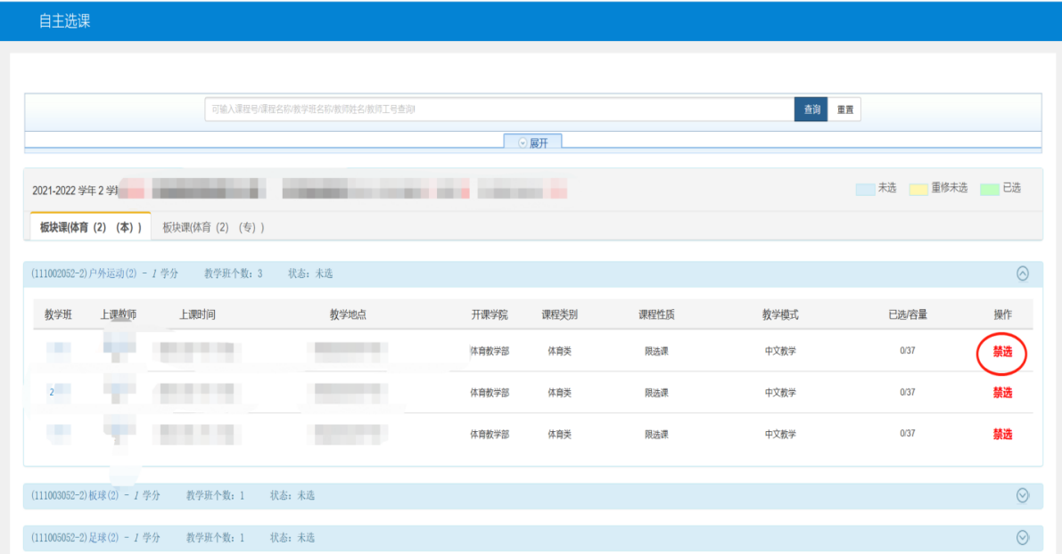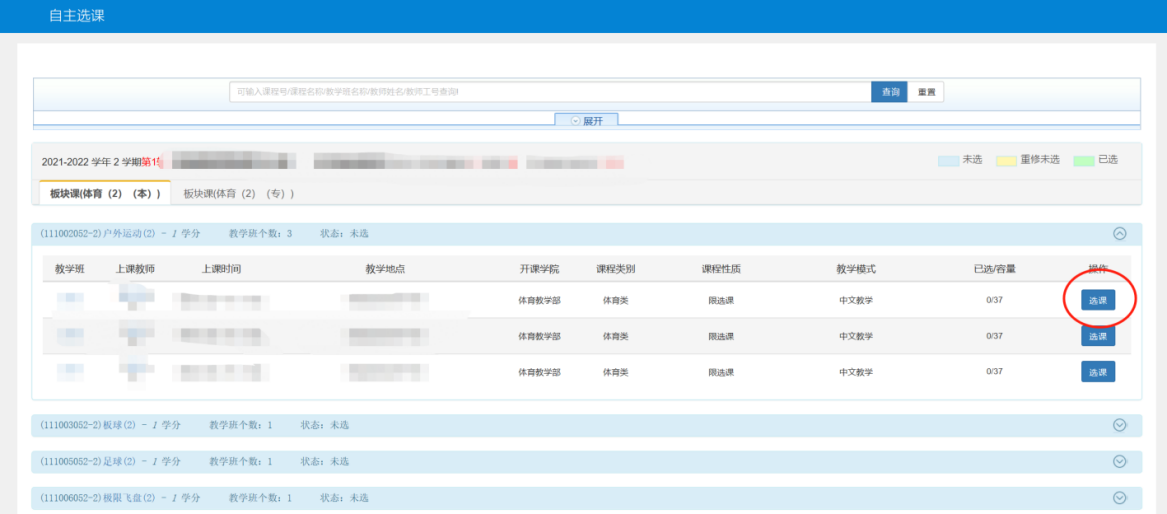 注:学生可于3月18日12:00-22:00事先查看可选班级,此时无法选课