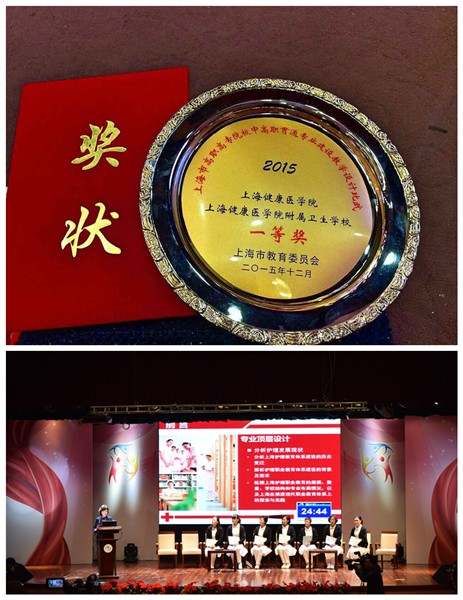 1月8日,2015年上海市高职高专院校中高职贯通专业建设教学设计比武(决赛)在上海交通大学医学院懿德楼隆重举行。经过激烈角逐,我校唐红梅副校长领衔的教学团队以417票的高票勇夺决赛团队一等奖,仁济医院消化内科许美护士长作为我校兼职教师获得高职组最佳说课老师奖。全市各中高职院校校长、专业主任、骨干教师500余人观摩。