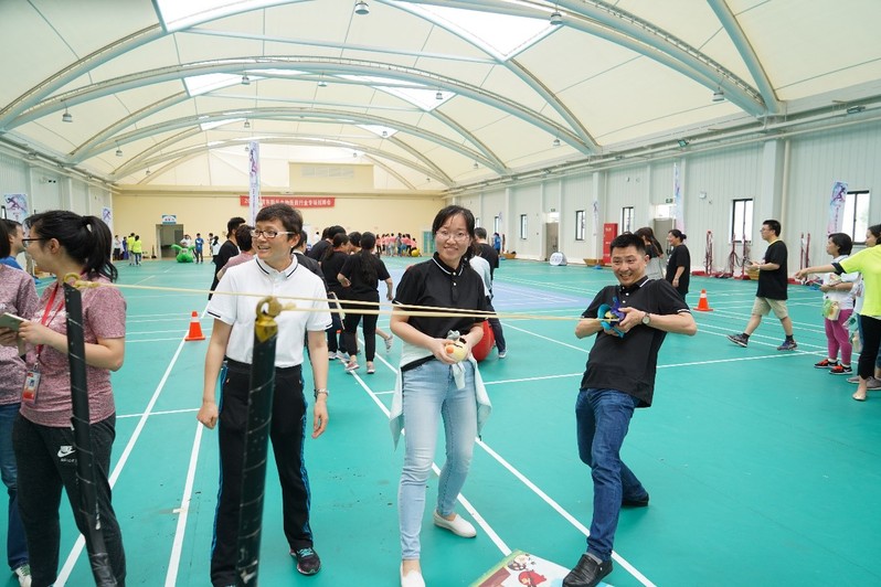 在开幕式中,外语教学部的代表老师们身着整齐的服装,精神饱满的入场。随后,老师们分组参加了三向拔河、毛毛虫竞赛、愤怒小鸟三项集体项目,每场比赛的气氛都场面火热,高潮迭起。赛场上的老师们精神抖擞、奋力拼搏,充分体现了外语教学部的团结协作精神、集体荣誉感和健康快乐的精神风貌。个人项目的短绳、踢毽子和飞镖,大家也踊跃参加,每一位老师都通过运动增强了个人身体素质,展现了自我风采,发挥出自己的特长。(外语教学部工会)