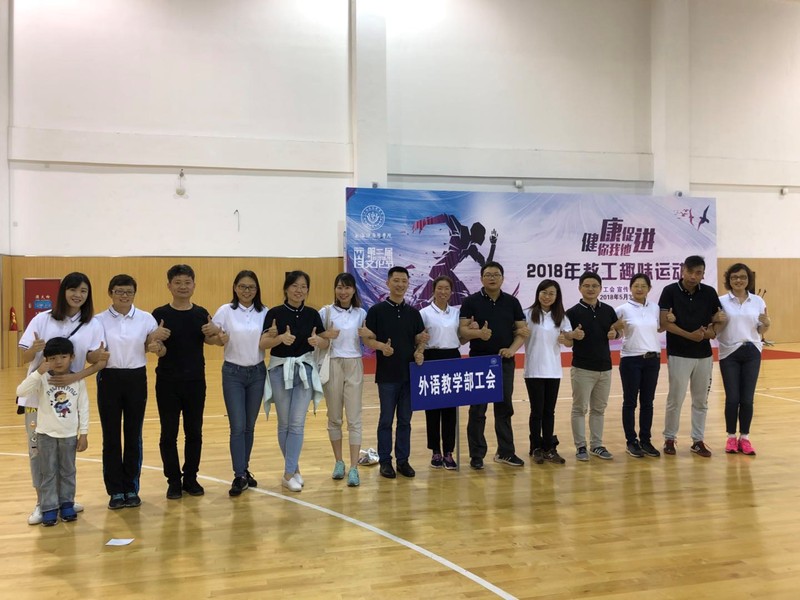 2018年教工趣味运动会于5月31日在校南苑体育馆举行,虽然天空下着绵绵细雨,但一点也不影响大家参赛的热情。本次外语教学部在工会主席张倩的带领下,共计有25位老师报名参加了各项比赛。