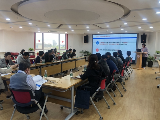 人事处宁坚老师介绍人才项目。前期,人事处、科技处分别梳理了建校以来相关的各类项目情况。宁坚结合学校人才阶梯式培养体系,对目前掌握的国家和上海市34个项目逐一作了介绍,就如何做好人才项目工作提出了建议与要求。