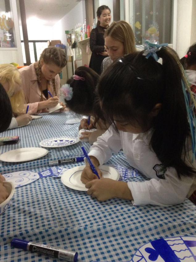 图二:为学生在幼儿园内组织活动,绘制青花瓷图案