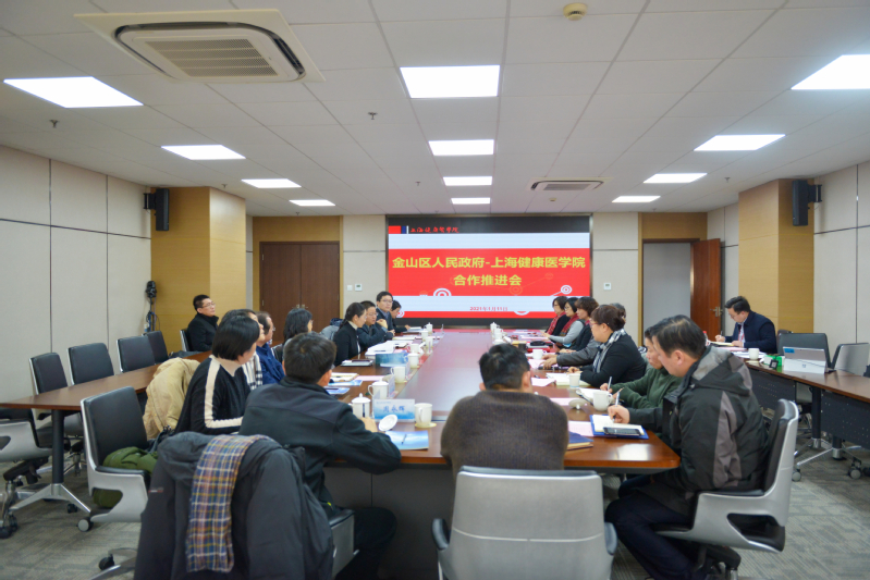 1月11日,金山区人民政府副区长张娣芳,金山区卫健工作党委书记孙群荣、金山区教育局局长郑瑛等一行来到我校,就进一步推动区校合作事宜进行深入讨论。学校党委副书记、校长黄钢,副校长沈国芳以及相关职能部门、二级学院负责人出席。