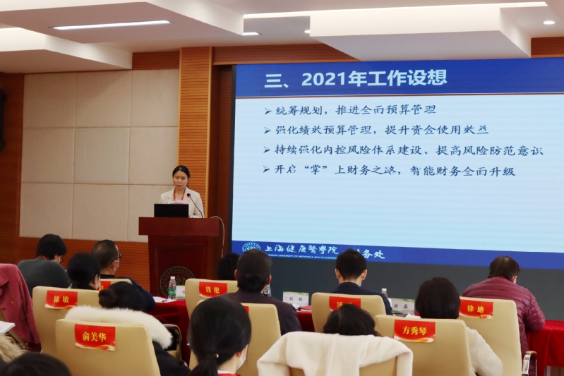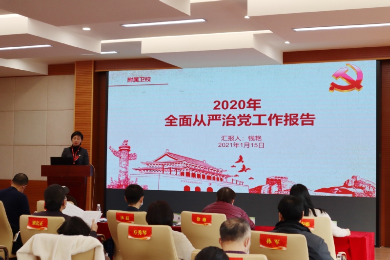 在医学院财务处副处长王嘉颖作《2020年度学校财务工作报告》之后,校党总支书记钱艳作《2020年度全面从严治党工作报告》。报告主要从加强党的政治建设、持续开展理想信念教育、持续压紧压实管党治党的政治责任、驰而不息整治“四风”、抓好主题教育和政治巡视查摆问题的整改工作和强化制度完善和执行六个方面进行了汇报。最后,她指出,2021年学校党总支将继续以习近平新时代中国特色社会主义思想为指导,全面贯彻党的十九届历次全会精神,聚焦新时代党的建设总要求,以《上海职业教育高质量发展行动计划(2019-2022年)》和学校《“十四五”教育事业发展规划》为落脚点,继续推进落实全面从严治党,绷紧疫情防控安全弦,紧紧围绕中心工作,坚持以党的政治建设为统领,着力提升党建工作质量,使党支部凝聚力、战斗力更加突出为推动各项工作开展提供有力的思想政治和组织保证。