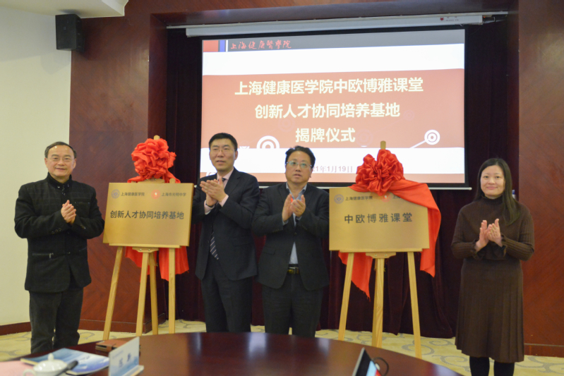 双方学校领导共同为上海健康医学院-上海市光明中学“中欧博雅课堂”和“创新人才协同培养基地”揭牌,在创新型“高(高中)-本(本科)-硕(硕士)”培养模式、德育教育、顶尖医学法语人才培养、优质专业资源共享、科研启蒙等6大方面深化战略合作,开展党建联建、贯通式医学人才培养模式创新等共建项目,协同推进优质教育资源深度融合,推进健康教育事业发展。