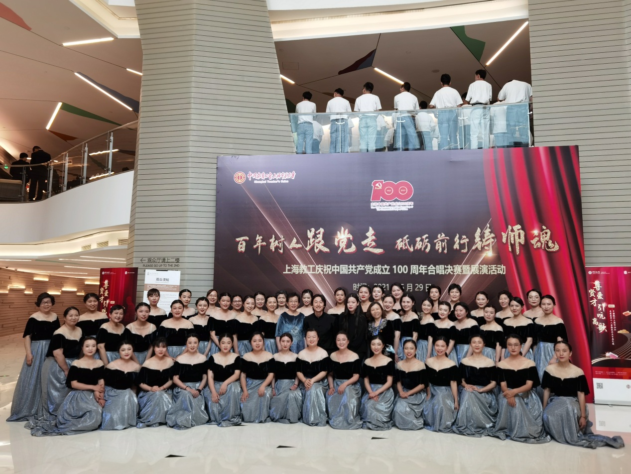 备赛期间老师们秉承“厚德至善,健行康民”的校训和怀揣着庆祝建党100周年之情,克服了各种困难,放弃休息时间下班后进行训练。本首歌曲难度大,排练时间短,大家在外请指挥上海音乐学院,青年指挥丛高博,钢琴伴奏王丹彤二位老师的指导下,以最饱满的精神状态和健康人的风采向建党100周年献礼。(工会)