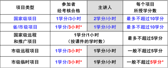 5、申报项目学分计算:国家级3学时1学分,上海市级3学分1学时。
