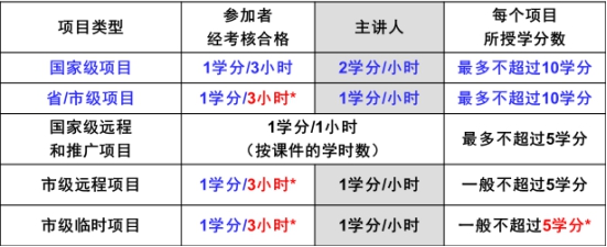 5、申报项目学分计算:国家级3学时1学分,上海市级3学时1学分。