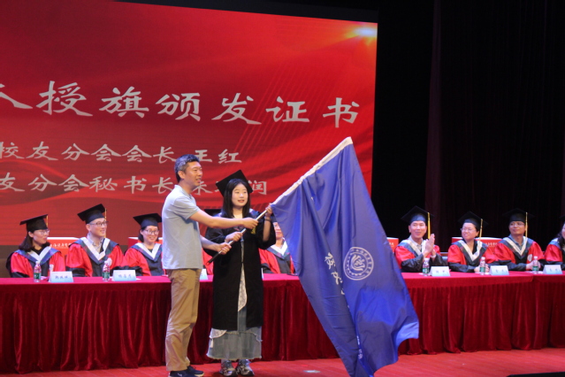 康复学院校友分会会长王红和秘书长朱璜润为校友联络人颁发证书并授旗。这一仪式象征着校友精神的传承,也标志着毕业生们正式加入校友大家庭。旗帜飘扬,薪火相传,校友们将以新的身份继续为学院贡献力量。