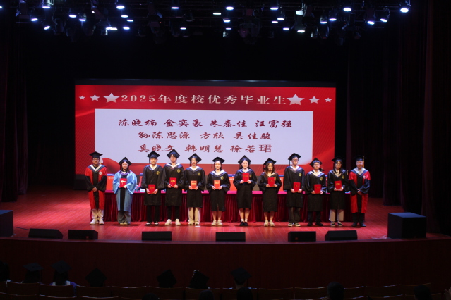 康复学院党总支书记王红宣读了优秀毕业生名单。这些学子以优异的成绩和卓越的表现赢得了荣誉,他们的名字在会场中回荡,成为学弟学妹们追逐的榜样。王红书记勉励全体毕业生以他们为标杆,在未来的人生道路上继续书写辉煌。