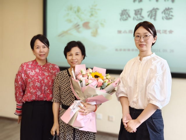 最后,朱清和毕昕代表全体教师为徐院长送上了荣退纪念品,在场的所有老师共同为徐院长唱了生日歌,并祝愿她退休后的生活更加美好、幸福。