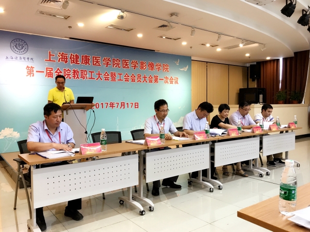 7月17日,医学影像学院第一届第一次全院教职工大会暨工会会员大会在南苑7号楼403会议室顺利举行,副校长张道方、校工会副主席芦静、医学影像学院党政工领导及全院教师参加会议。