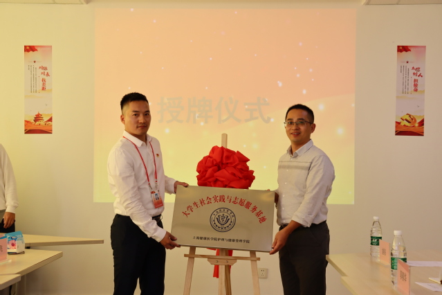 随后,护管学院党总支书记汤磊、上海市民政第二精神卫生中心副院长乔惠君分别代表双方现场签署了合作意向书;紧接着,护管学院团总支书记宋飞授予上海市民政第二精神卫生中心康复社工部主任邬春华 “护理与健康管理学院大学生社会实践与志愿服务基地”铜牌。