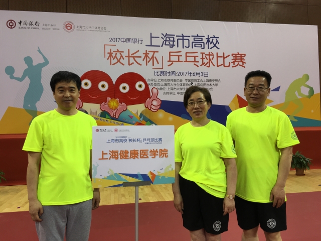 6月3日,由上海市教育委员会、中国教育工会上海市委员会主办的2017年中国银行上海市高校“校长杯”乒乓球比赛在上海应用技术大学隆重举行,我校党委书记郑沈芳、副书记李明磊、副校长张道方组队参赛,与华东师范大学等其它21所高校的参赛校领导切磋交流,展现“健康”形象。