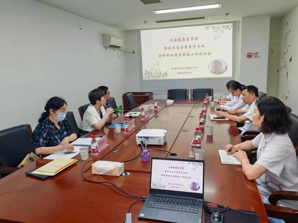 2024年7月11日上午,健康与公共卫生学院副院长那立欣、张浩,食品卫生与营养学专业主任李雪玲和邸倩南老师一行赴康桥社区卫生服务中心座谈交流。此次走访主要讨论了食品卫生与营养学专业本科毕业生实习带教工作。
