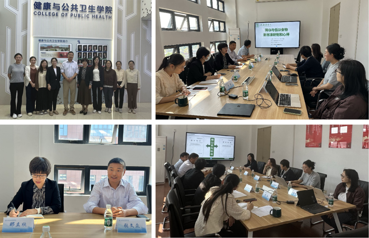 会议伊始,那立欣副院长对张文众教授的来访致以了热烈的欢迎,并详细介绍了学院的基本情况,包括师资力量以及学科的发展现状。随后,张文众教授开始了他的精彩分享。张教授以“低GI和降 GI 食品新标准研制和心得”为主题,深入浅出地阐述了这一领域的前沿研究成果。他详细阐述了新标准研制的关键环节、面临的挑战,以及在产业化转化方面的思考。张教授特别提到了他首创的《降食物血糖生成指数测定方法》T/HZFNS001-2024和《降食物血糖生成指数标示规范》T/HZFNS002-2024,这两项标准为降GI食品的研发和检测提供了科学依据。同时,他还介绍了基于动物试验的低GI食品检测和标示标准,为低GI食品的推广和应用提供了新的视角。