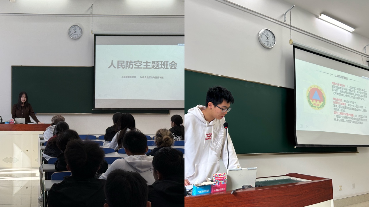 10月29日,2024级食品卫生与营养学(本科)班全体同学于东苑北楼203开展了人民防空主题班会。班会上通过讲解人民防空标志、人民防空的内涵及目的、人民防空警报与防护技能,使学生更为深入地了解人民防空知识,增强了学生的安全意识和自我防护能力。