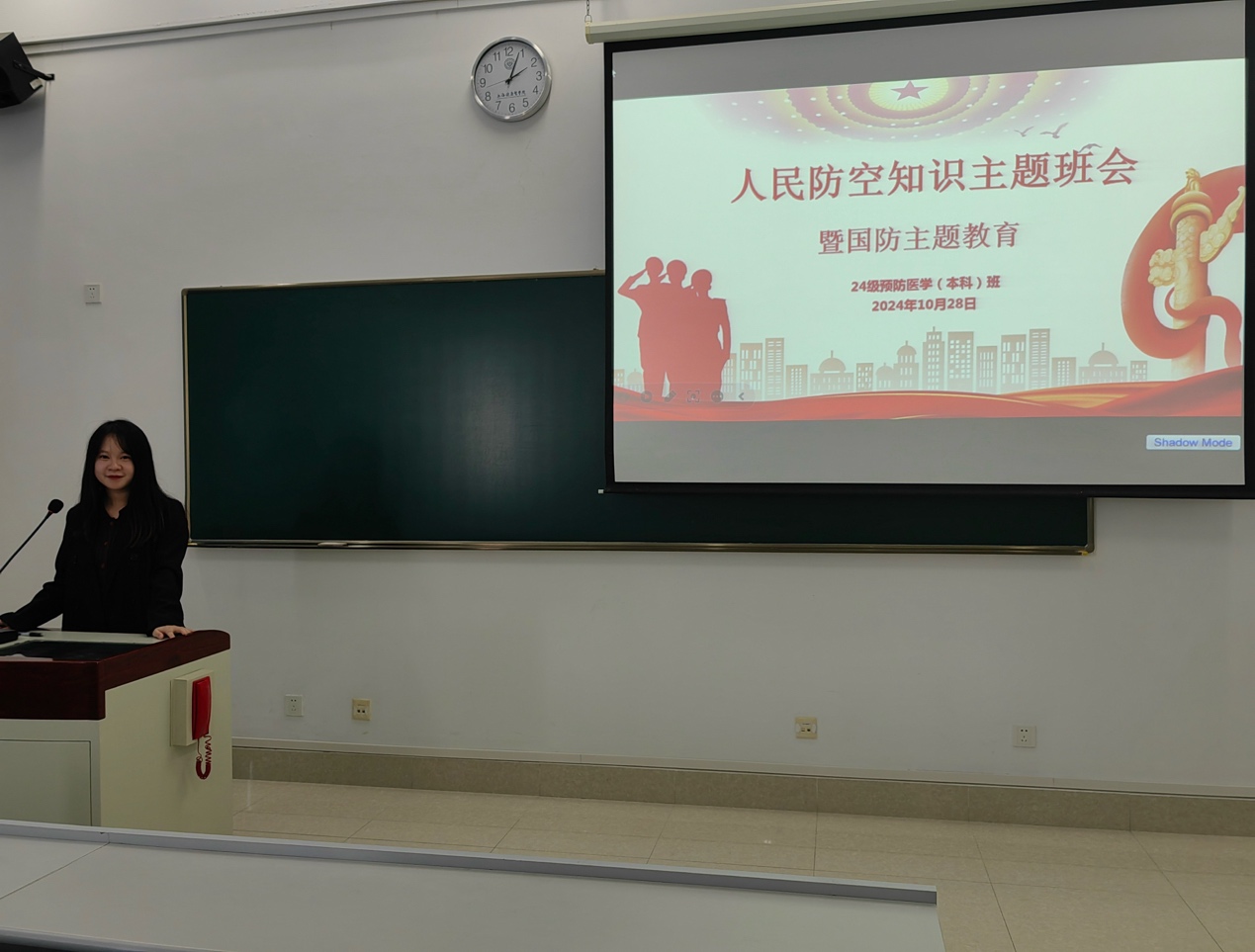 10月28日,2024级预防医学(本科)班于东苑北楼203开展人民防空知识主题班会暨国防主题教育。班会从人防、国防的定义说起,再到现代人防体系的重要意义,最后讲解相关案例,层层深入,让同学们对人民防空有了更加全面的了解,激发了学生的爱国热情。