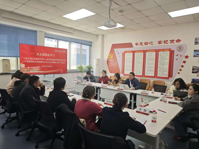 为共同推进党建和业务发展,2025年11月20日,上海健康医学院健康与公共卫生学院教工第一党支部与上海交通大学材料科学与工程学院氢科学研究所党支部在上海交通大学闵行校区开展联合党建活动。双方党员共聚一堂,共话交流合作,通过资源整合,优势互补,共谋党建与业务融合发展。上海交通大学材料科学与工程学院院长戴庆、上海健康医学院健康与公共卫生学院党总支书记顾斐雯,副书记、副院长张浩出席活动。