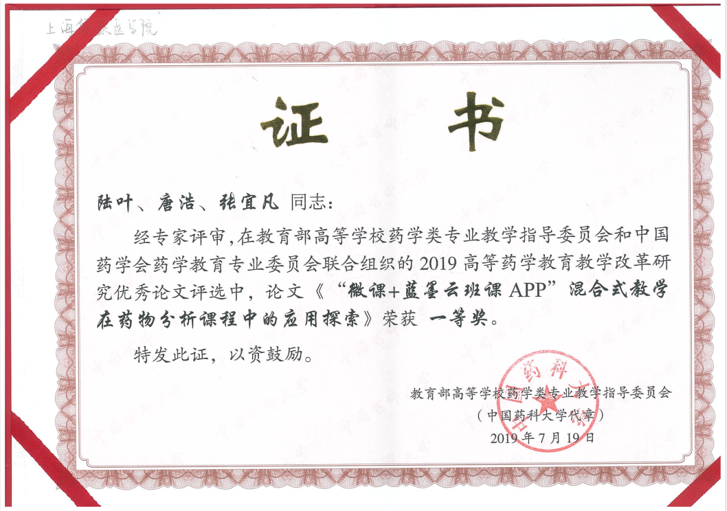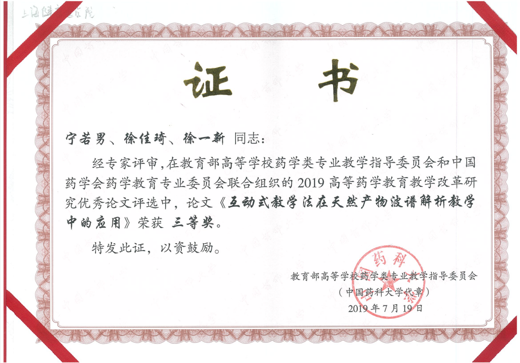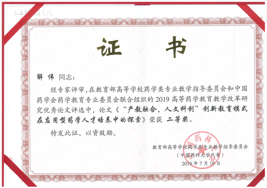 喜报:2019高等药学教育教学改革研究优秀论文获奖
