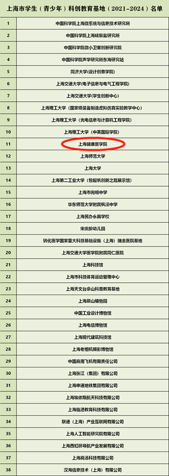 喜报!上海健康医学院确定为首批上海市学生(青少年)科创教育基地(2021-2024)