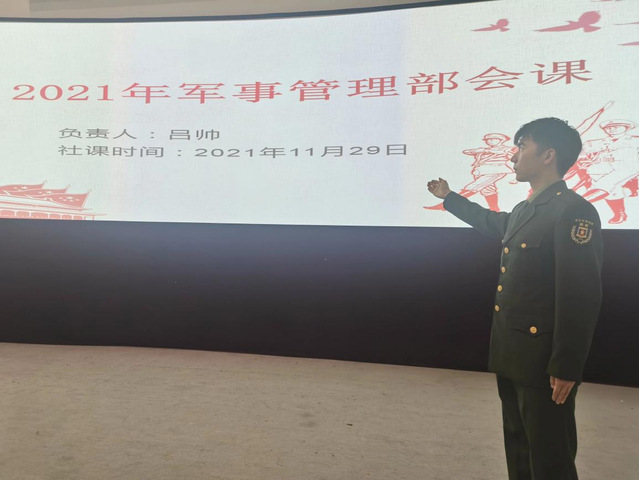 2021年11月29日晚在新南苑大学生发展中心一楼上海健康医学院迷彩战线联合会开展了本学年第六次会课,本次会课由军事管理部部长吕帅组织开展。