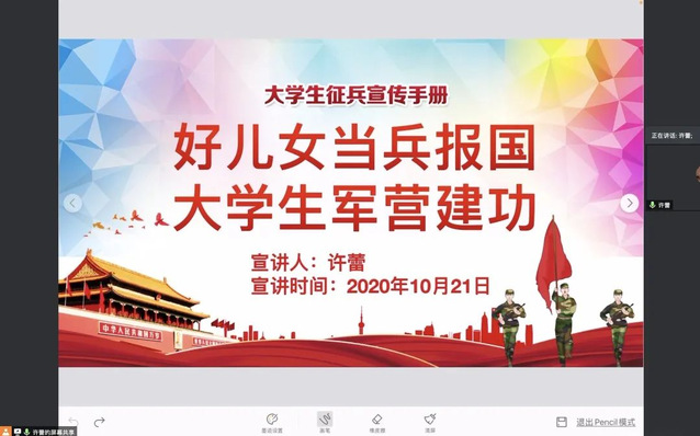 随后,会长又介绍了报名参军的基本流程,共分为七个阶段:网上报名阶段、初检初审阶段、体检政审阶段、走访调查阶段、预定新兵阶段、张榜公示阶段、批准入伍阶段。而女生入伍程序与男生大体相同,在时间上通常安排在男兵体检政审之后展开,由县级征兵办协助市征兵办统一组织实施。