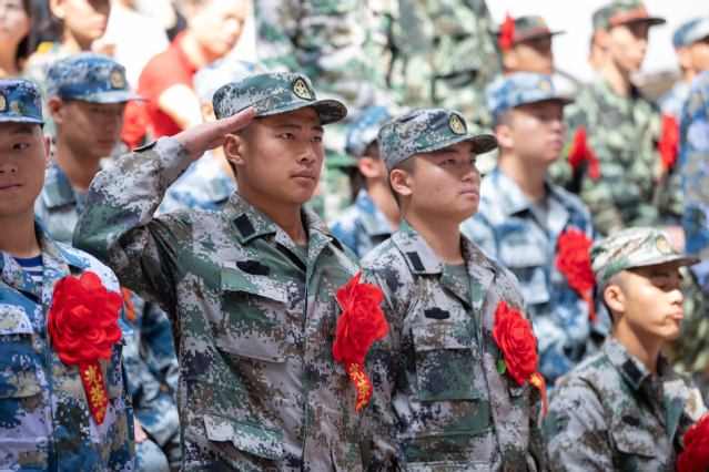 黄浦区武装部军事科科长王亚伟表示,我们正处在一个新的伟大时代,奋斗是新时代的要求,也是每个人应有的状态。并对在场的新兵、退役士兵分别提出期许。