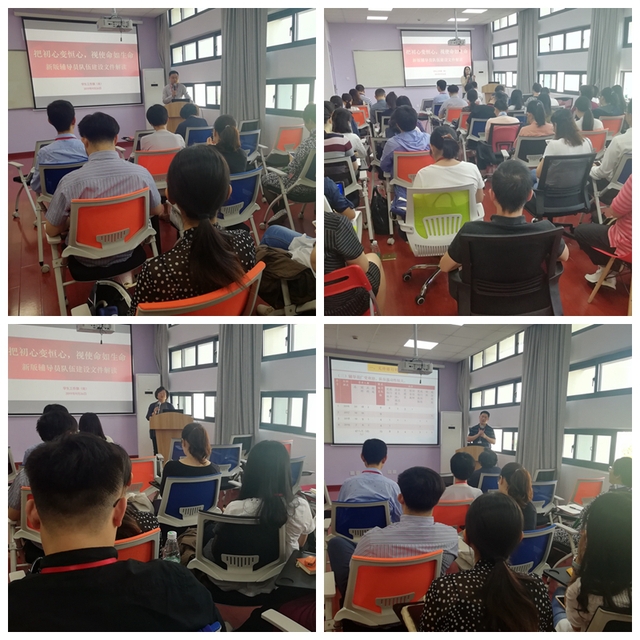 9月26日学工部在新南苑大学生发展中心举办“把初心变恒心,视使命如生命”主题教育专项调研——辅导员队伍建设之制度解读释疑。各二级学院副书记、全体专职辅导员及学工部相关人员参加培训。