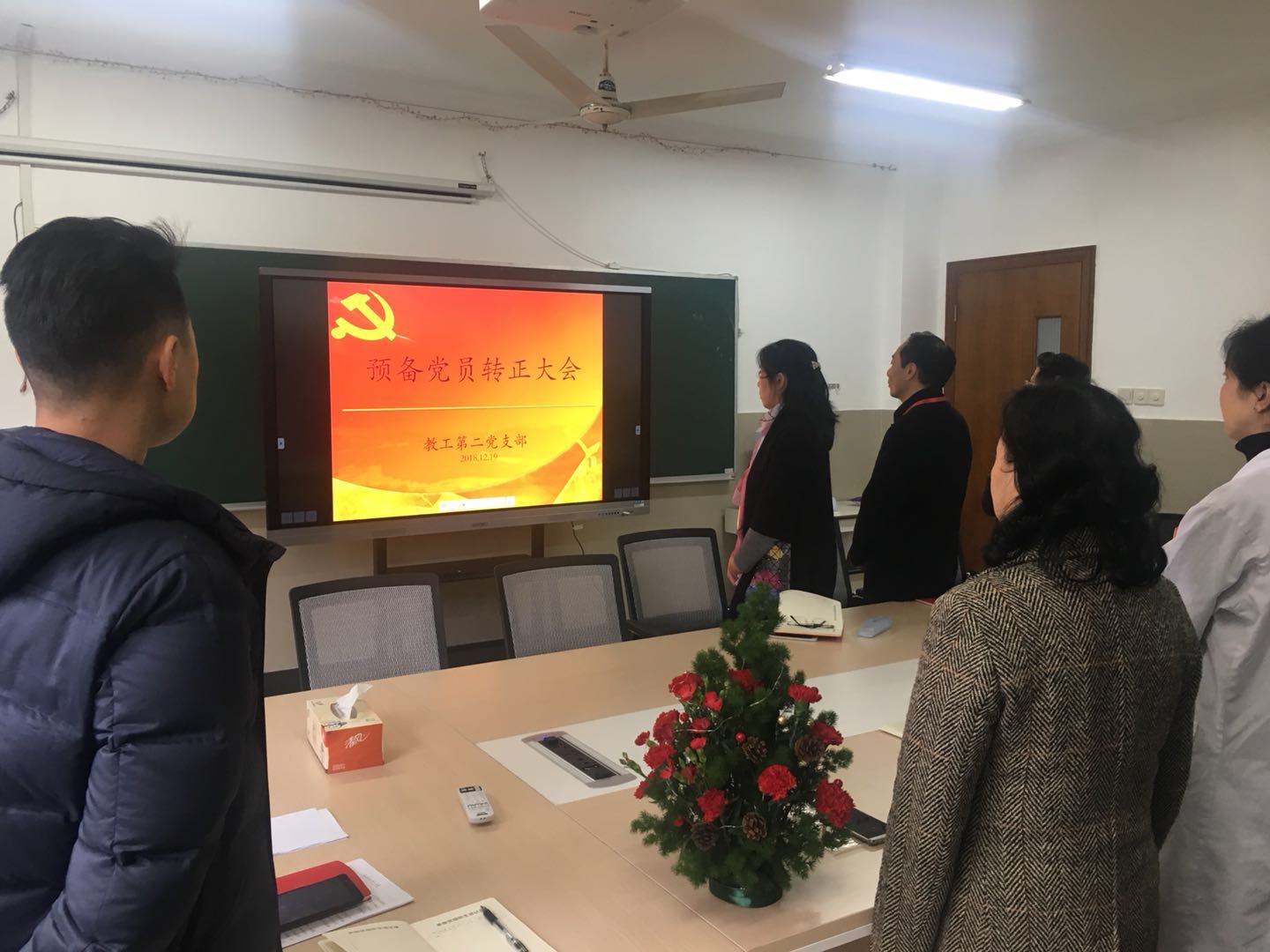 2018年12月19日下午,教工第二党支部在第一实验楼103会议室召开了唐浩同志预备党员转正大会,教工第二党支部的全体党员出席。