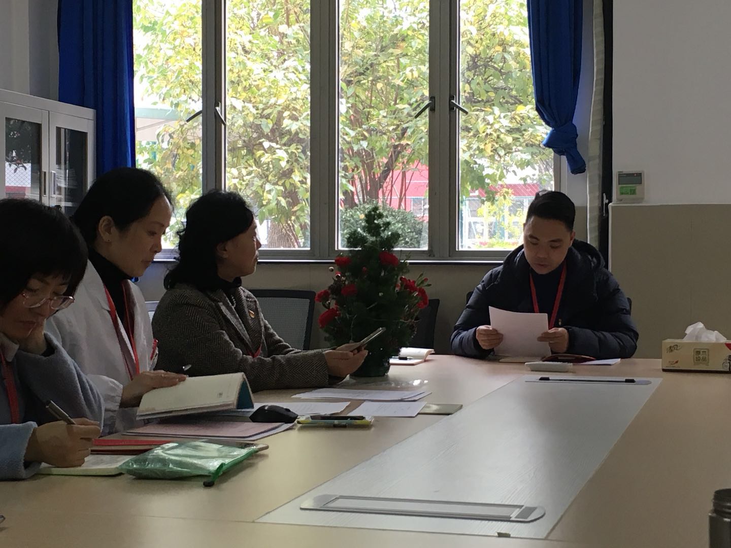 在清点出席人数后,党支部书记顾春娟宣布转正大会正式开始。在庄严的国旗下全体党员起立高唱国歌,随后唐浩同志宣读了他的转正申请书。唐浩同志于2017年12月9日被批准为中共预备党员,一年来在党组织的培养下,在思想、工作、学习等多方面都有了长足的进步。两位联系人也对他这一年中取得的成长给予了肯定,一致认为唐浩在思想上与党中央保持高度一致,定期主动向党组织汇报思想;在工作中面对一共仅有2位药学专业老师的情况下配合系部主任和教研室主任认真开展并完成各项工作,保证了教学的顺利进行;主动承担了3个药学专业的班主任工作,深入同学中间,关心他们的学习和生活。随后,支部的其他党员也纷纷对唐浩同志的转正发表个人意见,在同意他按期转正的同时也希望他在今后的工作中更加耐心、细致,更好地开展各项工作。唐浩同志在最后的表态中也表示他会把大家对他的鼓励和肯定化为在今后工作中的动力,更加坚定自己的理想信念,在班主任工作中会更加耐心主动,深入同学中间,真正成为同学们心目中的“知心哥哥”。