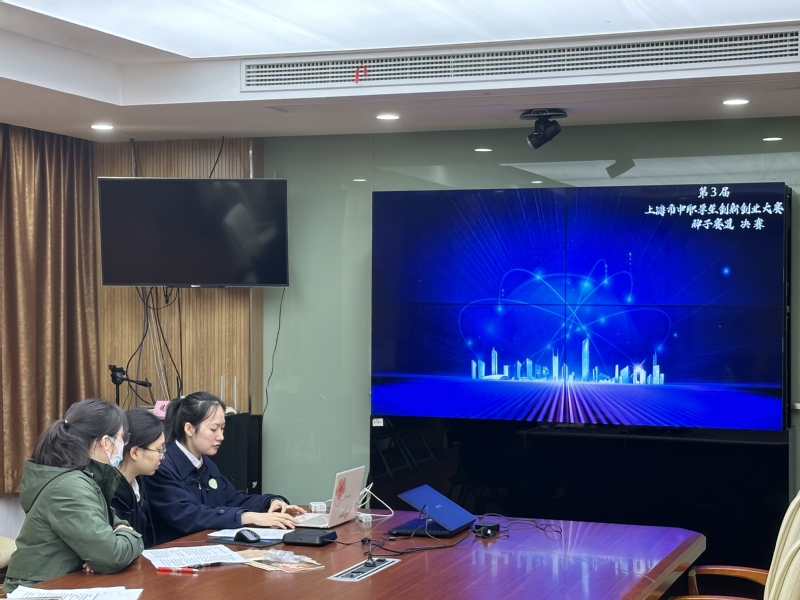 在决赛路演现场,我校参赛学子凭借前期充分的准备工作,有条不紊地进行PPT路演,沉着冷静地面对比赛中出现的各种问题与专业评委们的各类提问,彰显了卫校学子自信大方,敢闯会创的风范与能力。