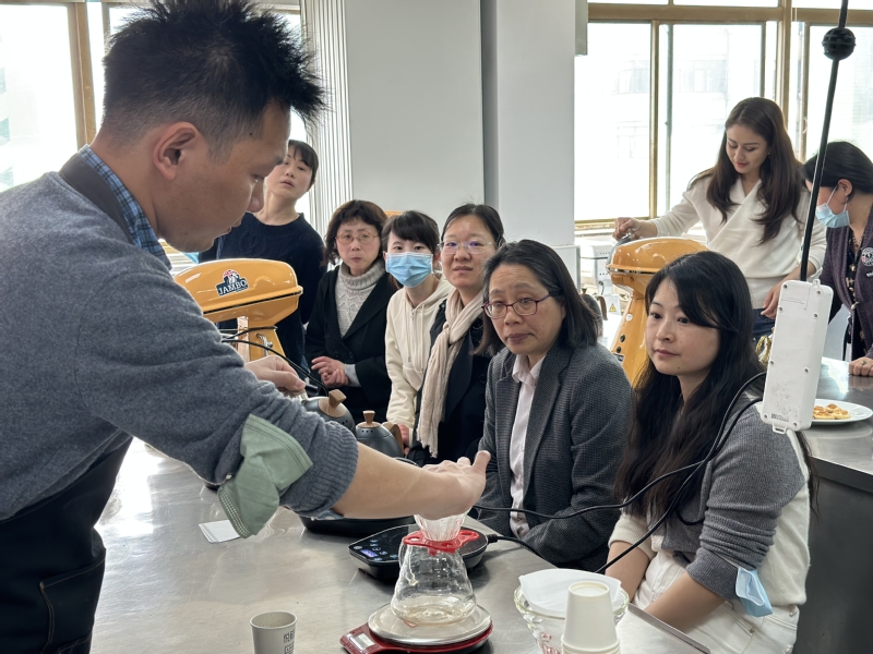 通过手工烘焙,女教职工们了解了烘焙工具的使用、制作蛋糕食材的配比和家用烘焙小常识、技巧。活动现场,大家动手尝试裱花和装饰,享受温馨时光,收获快乐。而咖啡品鉴,为女教职工们带来嗅觉和味蕾的双重享受。通过咖啡的颜色来判断烘焙程度,通过香气来体会不同风味,感受酸甜苦的平衡。活动现场,大家欣赏闷蒸时咖啡的呼吸,品鉴“咖啡”的本味——酸甜苦咸鲜,充分体会幸福生活的味道。
