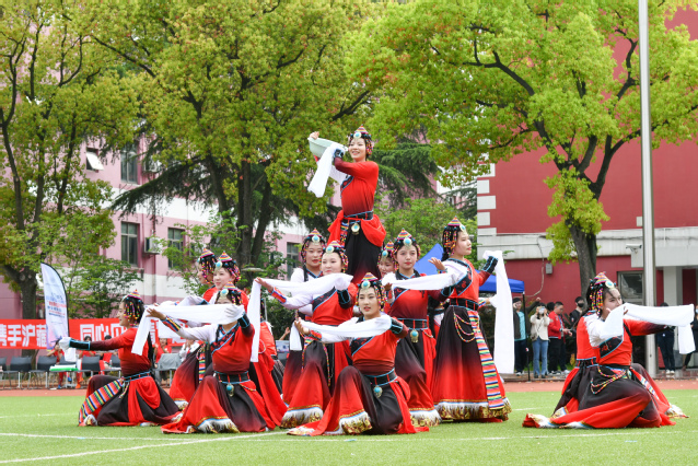 接着钱艳宣布活动开始,校艺术团民族舞蹈队为大家献上的精彩开场舞。