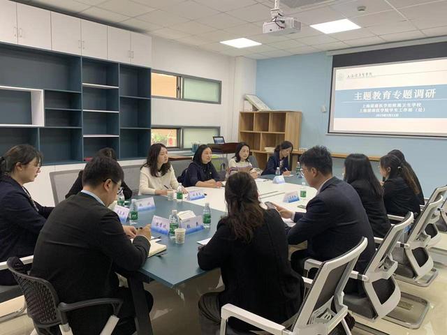 为深入开展学习贯彻习近平新时代中国特色社会主义思想主题教育,进一步拓宽工作视野,提升学生工作队伍能力,学习高等院校学生发展中心建设模式,促进我校学生工作高质量发展,5月11日,我校党总支书记钱艳,党总支副书记臧圆圆,副校长徐敏带领学校各学生工作部门负责人前往上海健康医学院学工部走访调研,上海健康医学院学工部部长吕晓丽率学工部各科室负责人热情接待。会议由钱艳主持。