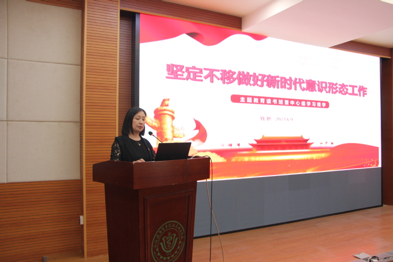 为学习贯彻习近平新时代中国特色社会主义思想,努力在以学铸魂、以学增智、以学正风、以学促干方面取得实实在在的成效,6月9日,学校围绕新时代意识形态工作开展主题教育读书班暨中心组(扩大)学习。党总支书记、常务副校长钱艳,副校长徐敏、副校长张建中和全体中层干部参加。学习由钱艳主持。