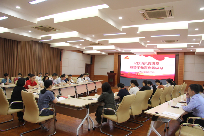 为持续推进学习贯彻习近平新时代中国特色社会主义思想主题教育走深走实,深入贯彻落实全面从严治党和新时代党风廉政建设工作要求,切实提高重点岗位人员廉洁自律意识,增强拒腐防变的能力,6月25日上午,学校召开了清风微讲堂暨警示教育专题学习。校党总支书记、常务副校长钱艳,党总支纪检委员、副校长徐敏、各党支部委员以及学校重点岗位人员和重大项目负责人参加了学习。